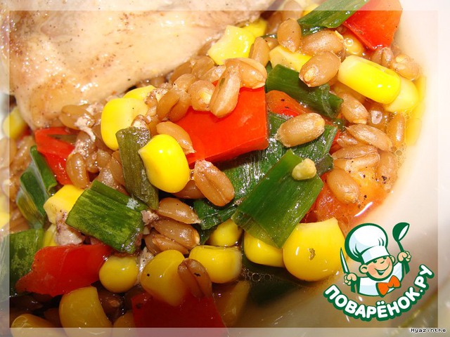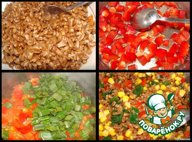 Пшеница сварена, теперь дело пойдет быстрее. Бульон сливаем (я на этом бульоне потом овощной суп варю, очень ароматный).