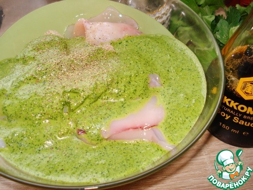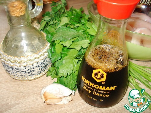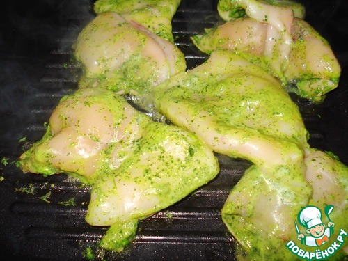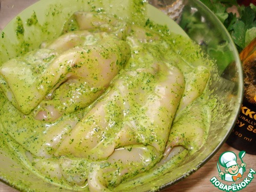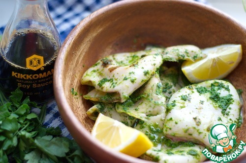 Кальмары в зеленом соусе на гриле