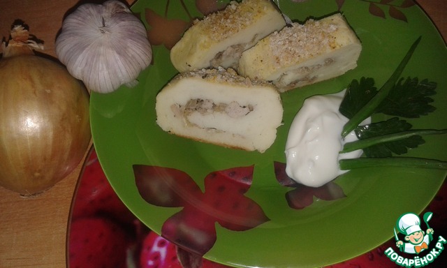 Подавать со сметаной, разрезав на кусочки. Приятного аппетита!