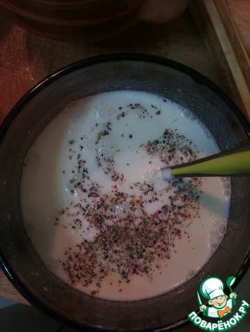 Смешиваем сметану+немного воды (довести до консистенции кефира), соль, перец, горчицу.