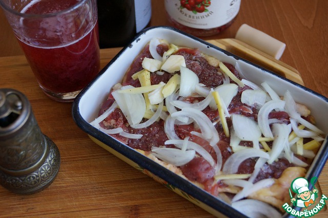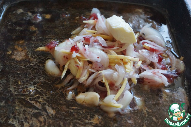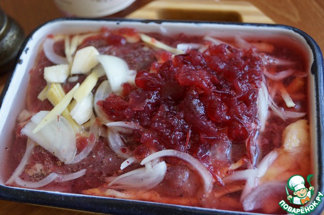 Сверху заливаем маринадом из вина с клюквенным соусом,
