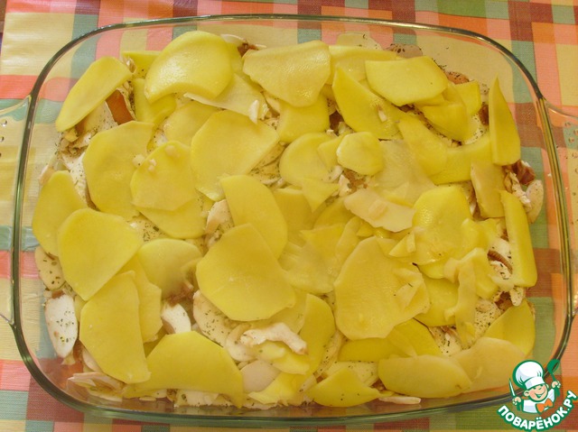 Запечёный картофель с курицей, шампиньонами и прованскими травами