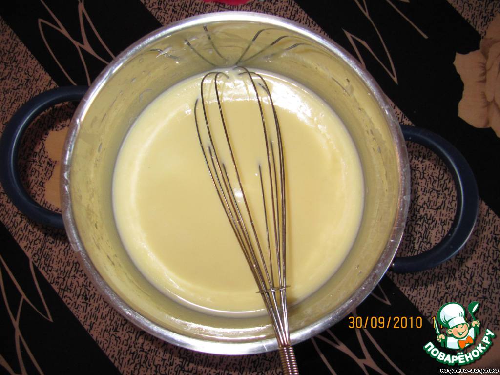 Яйца взбить в пену, добавить молоко.