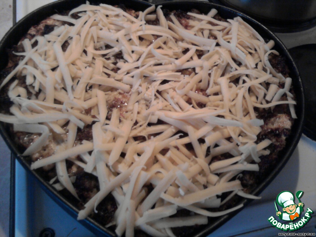 Через час достаем, посыпаем тертым сыром, и еще на 15 мин в духовку.Достаем и лопаем.