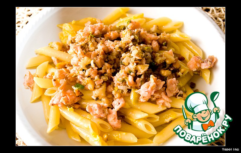Пеннэ с лососем и орехами (Penne con salmone e noci)
