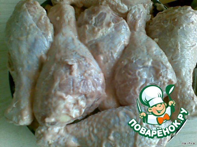 3.Куриную голень помыть, дать слегка стечь на дуршлаге.