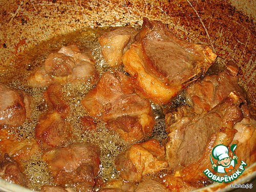Казан нагреть, раскалить масло. Бросить кусочек лука, чтобы он поджарился до угольков. Выбросить его.