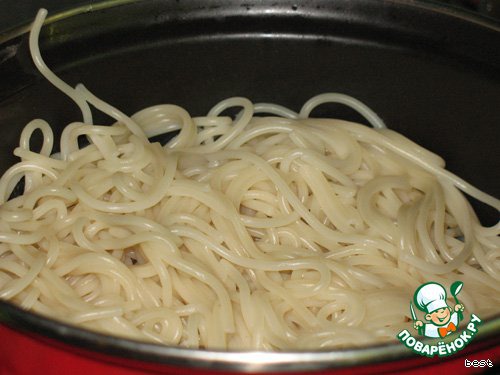 Спагетти отварить до готовности. Полить оливковым маслом.