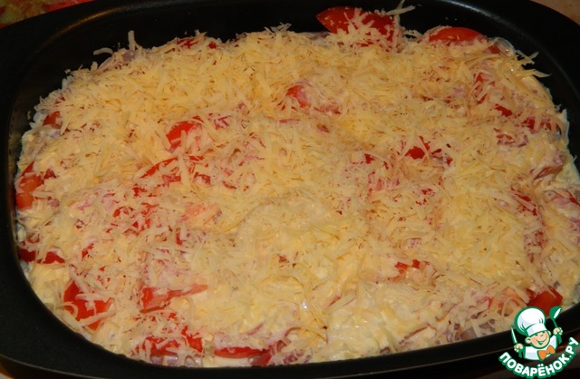 И сверху посыпаем оставшимся сыром. Готовим в духовке при 190С минут 30-40.