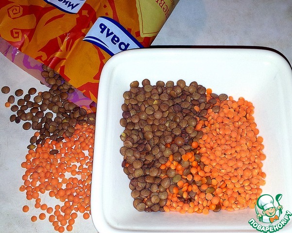 Для запеканки я взяла два сорта чечевицы "Мистраль". В ингредиентах вес чечевицы невареной.