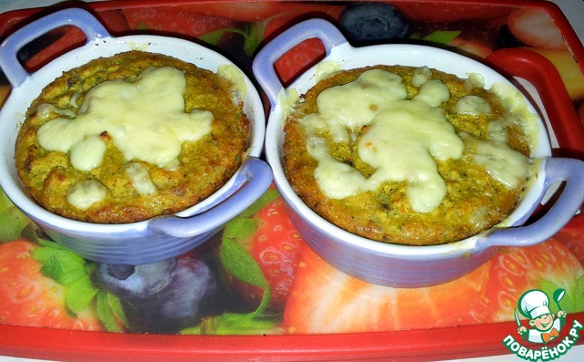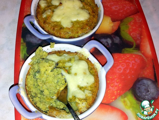 За пять минут до окончания запекания положила в креманки по ломтику сыра.