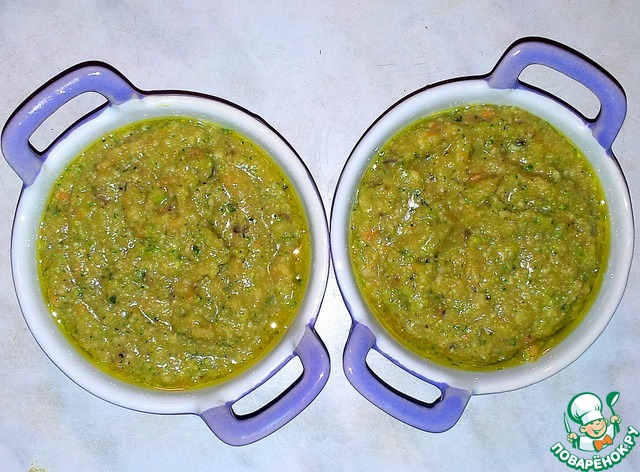 Смазала маслом креманки и разложила чечевичную смесь. Поставила их в горячую духовку выпекаться при температуре 180 градусов на 25 минут.