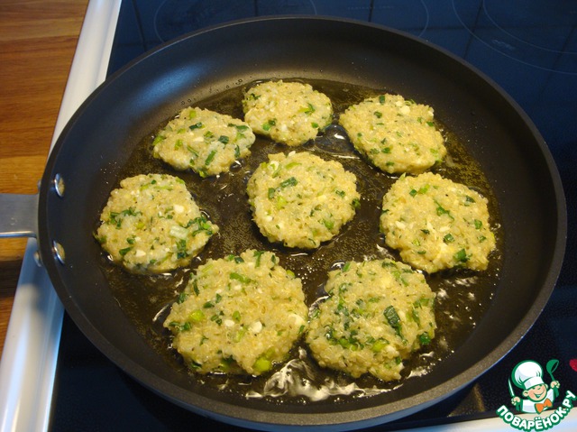 | Крупяные биточки со свежим базиликом и фетой - простая и полезная пища; их можно подавать как самостоятельное блюдо, так и в качестве гарнира. Нам пришлись по душе эти квиночки - готовила их с разными видами лука (репчатым, зелёным и пореем) - со всеми хорошо получается. |