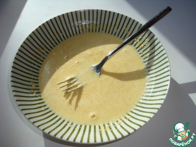 Смешать яйцо, сметану и панировочные сухари и оставить для разбухания на пару минут.