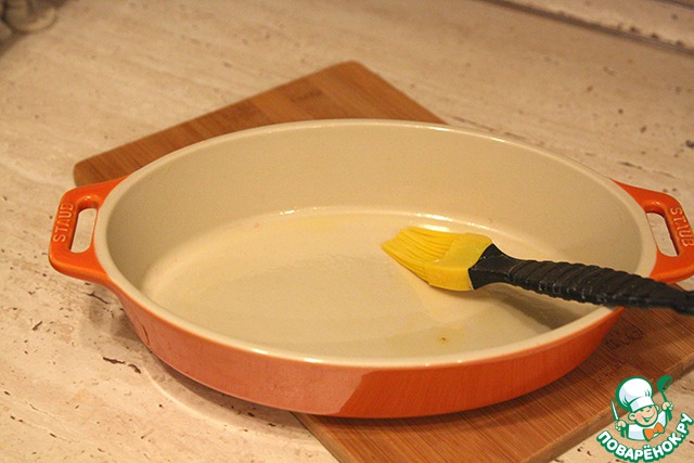 *Примечание: раньше я нагревала форму и смазывала куском масла, теперь делаю гораздо проще - смазываю форму растопленным в СВЧ маслом при помощи силиконовой кисточки.