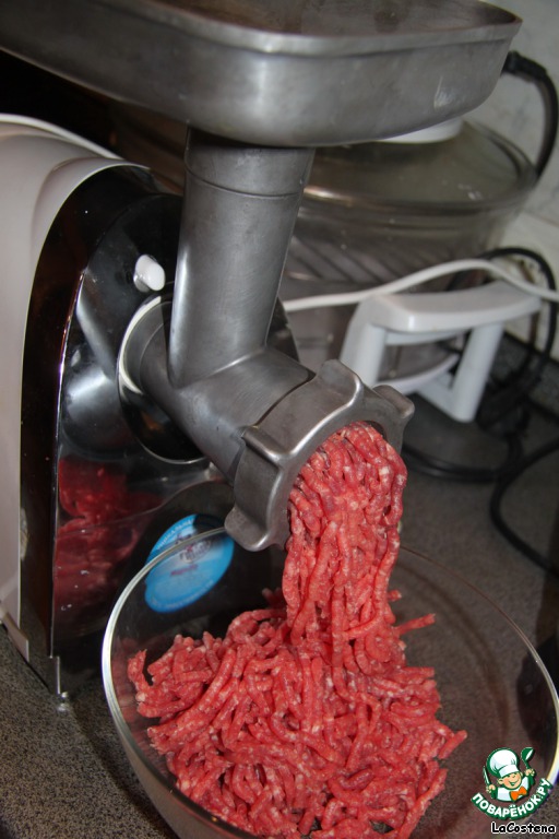 Подготовим фарш для котлет. Говядину пропустим через мясорубку.