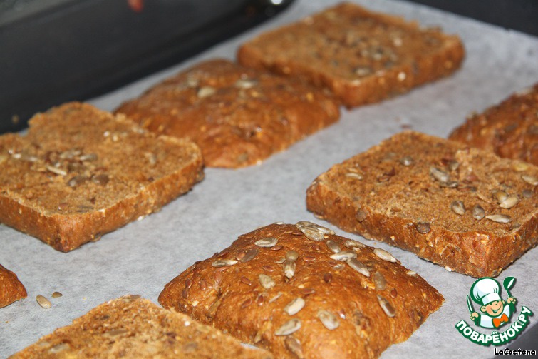 Готовые зерновые булочки разрезать, выложить на противень и прогревать в духовке около 5-7 минут, пока они не станут хрустящими.
