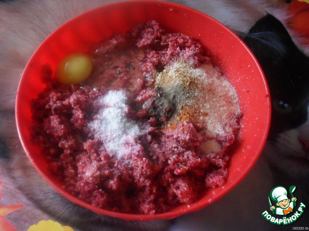 Подготовленные овощи и мясо пропустить через мясорубку.
