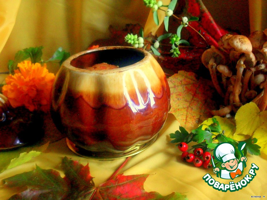 Горшочки накрыть крышечками и поставить в разогретую духовку, как только жидкость в горшочках закипит, уменьшить температуру до 180 градусов, запекать 30 минут.