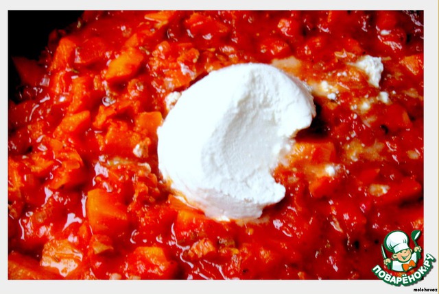 Когда лук уже прозрачный и чуть позолотел, добавляю томатное пюре, перемешиваю и даю постоять на маленьком огне минут 10. В это время ставлю варить макароны.