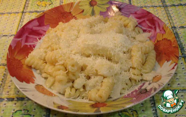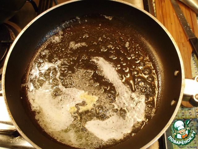 Пока варятся макароны, в сковороде растопить масло и выдавить чеснок,