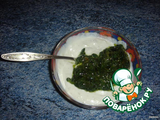 6. готовый шпинатный соус смешать с майонезной смесью.