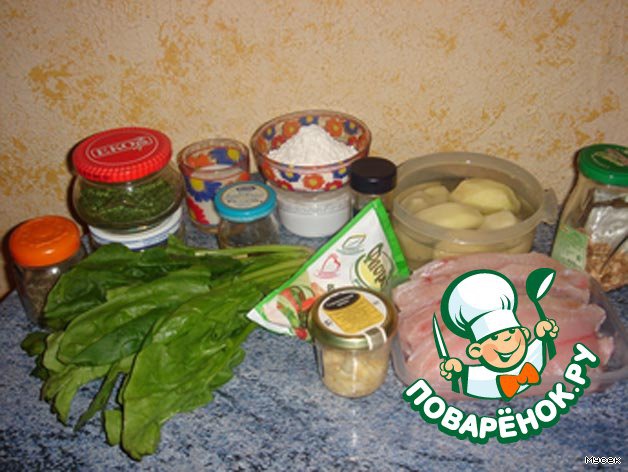 1. шпинат промыть, обсушить, и мелко порезав поставить тушиться.