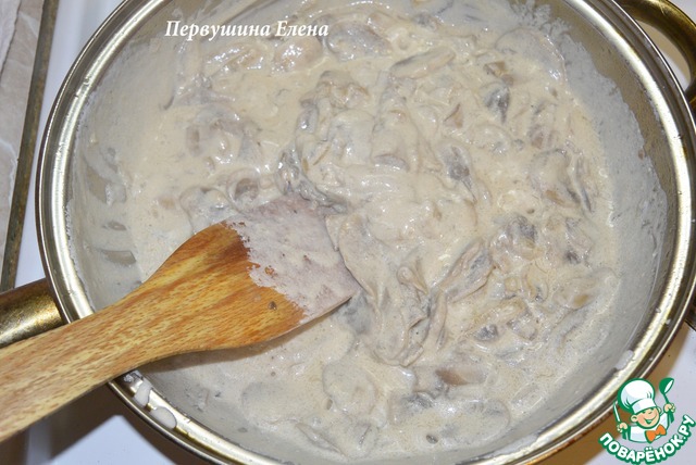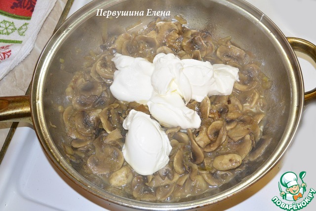 Положить сметану, хорошо размешать, довести до кипения и тушить на маленьком огне, пока не загустеет (не выпарится вся вода). Но если любите пожиже, то сильно не уваривайте.