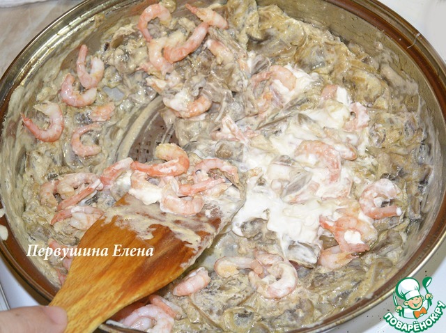 | Сытное, ароматное и очень вкусное блюдо! Отличное сочетания грибов и креветок - угощайтесь! |