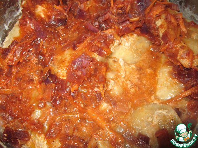 Сложить в глубокую жаровню и залить молоком. Тушить на маленьком огне до полного впитывания молока.