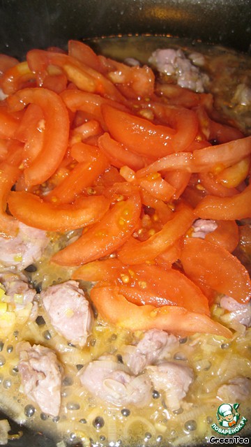 Свежие помидоры необходимо предварительно бланшировать, очистить от кожицы и нарезать. Добавить томатный соус или свежие помидоры и потушить минут 10.