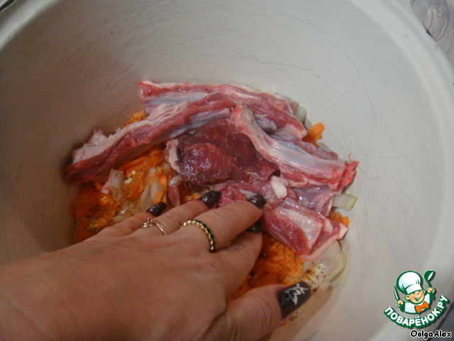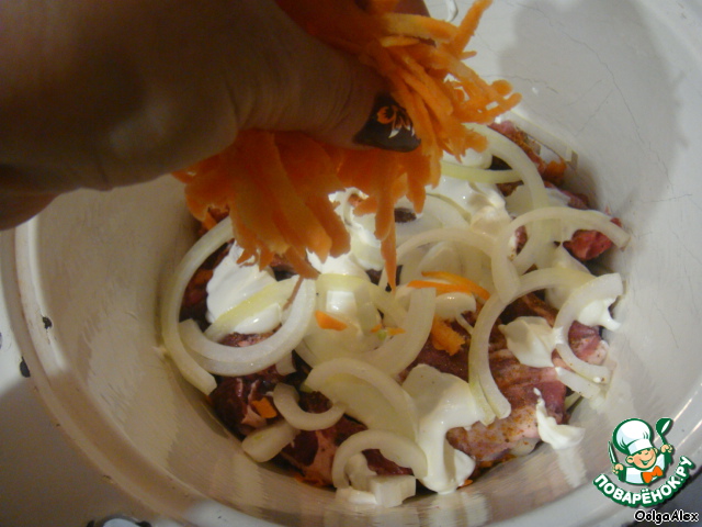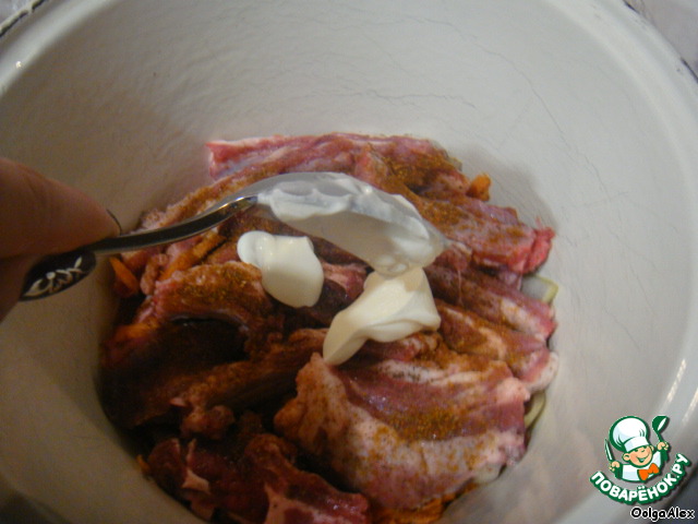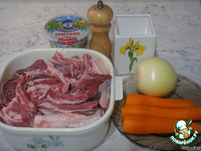 …морковь, ребра, соль, перец, лаврушка, приправы и сметана.