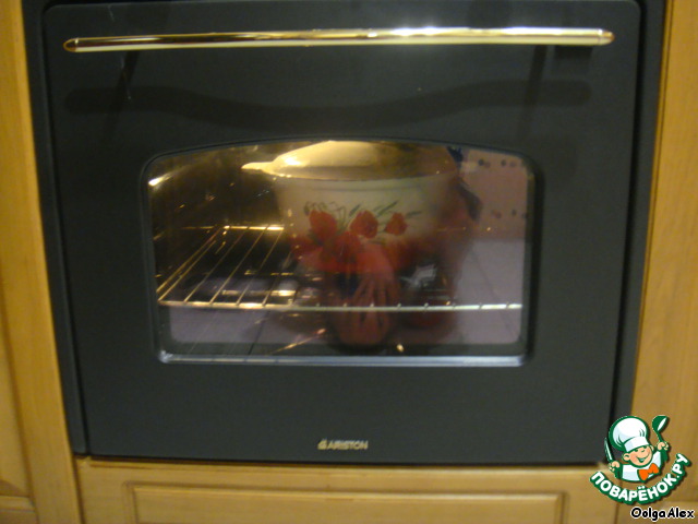 В разогретую до максимальной температуры духовку ставим чугунок на 1.5 часа. Для любителей жесткого мяса время можно уменьшить, а кто любит «помягче» - время увеличить. Если готовите ребра из дикого мяса, то 1 часа будет достаточно.