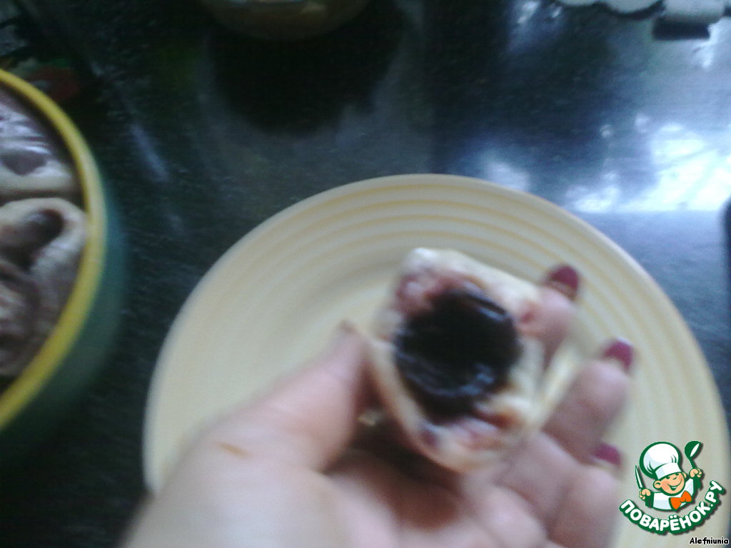 У сердечек вынуть сердцевинку и вложить вовнутрь чернослив.
