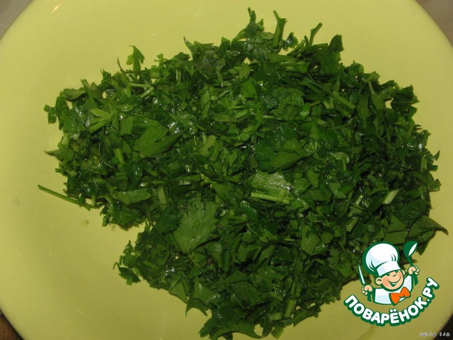 Зелень мелко нарезать (у меня была петрушка, укроп и кинза).