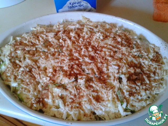 В кабачки добавить 100г натертого сыра и мускатный орех