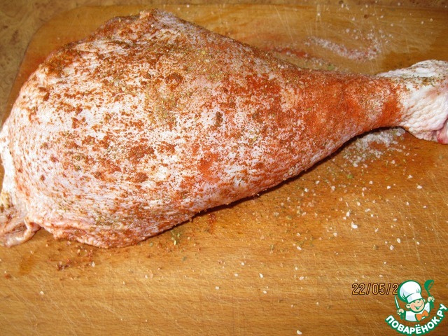 Ножку вымыть и промокнуть бумажным полотенцем. Подготовить специи