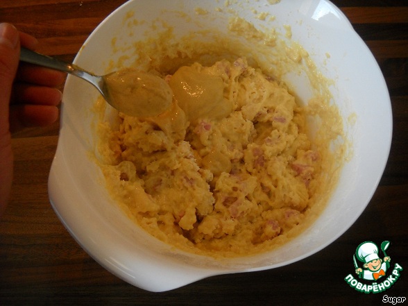 Закусочный кекс с ветчиной, горчицей и шампиньонами