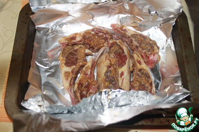 Сделать конвертик из фольги, плотно упаковать и запекать при темп 200 град 30 минут.