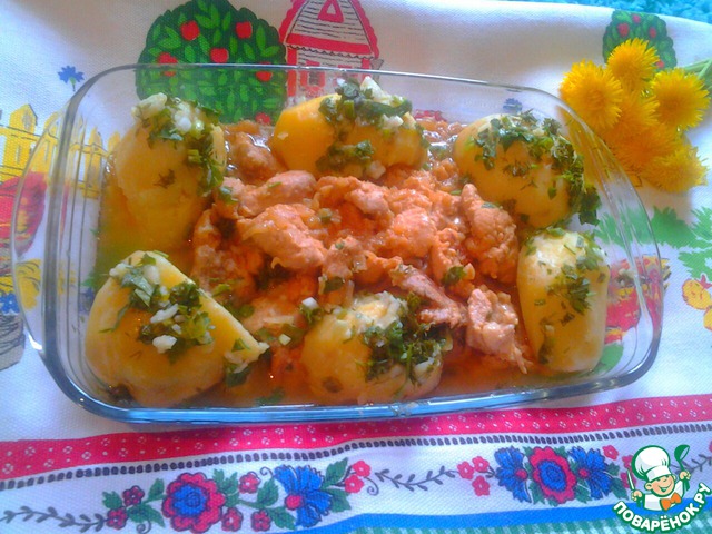 Я подавала с отварной картошкой. А к картошке я всегда делаю соус: майонез, сметаны, немного соевого или виноградного соуса.