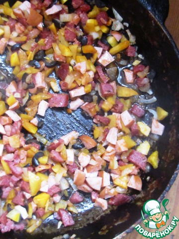 Я остановилась на начинке из тыквы и колбасок. Мясные изделия нам нужно нарезать небольшими кусочками.