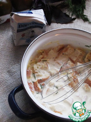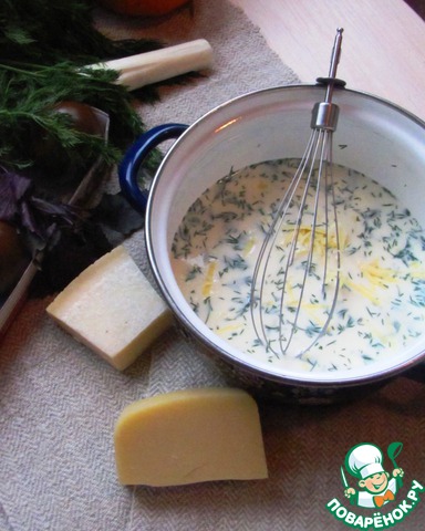 Яйца взбиваем с молоком, сливками Parmalat тертым сыром. Слегка присаливаем и добавляем щепотку черного перца. Я еще добавила немного укропа.