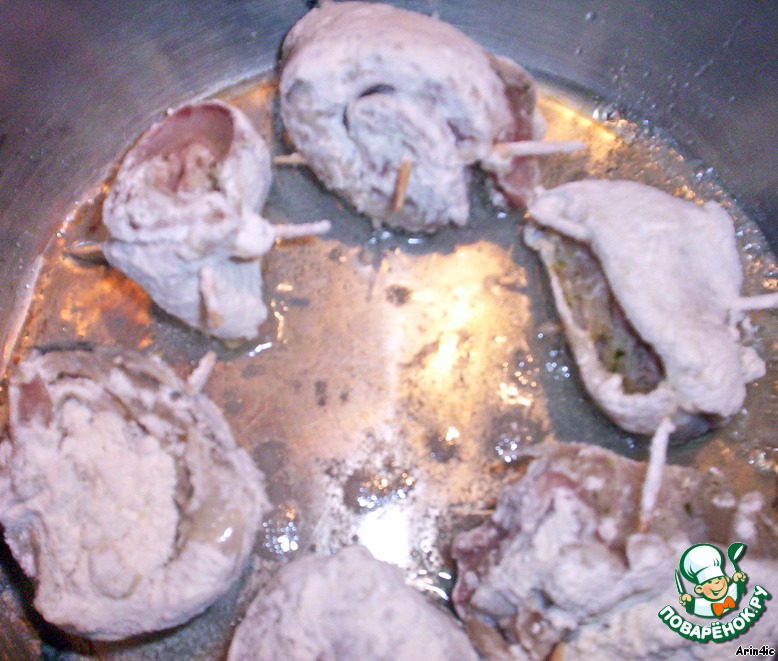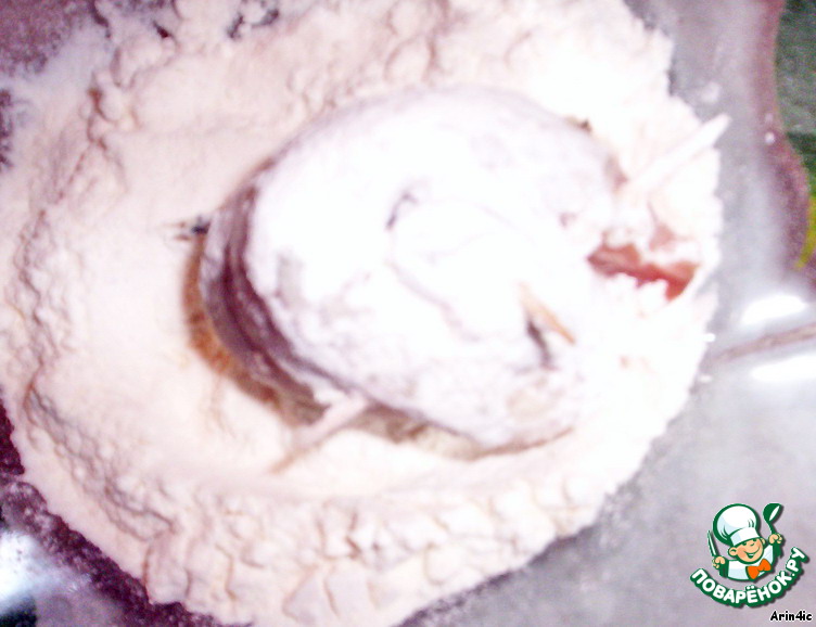 Обваливаем рулетики в муке.