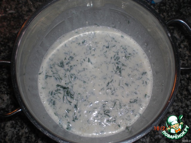 Приотовить соус - сметану смешать с измельчённым чесноком, зеленью и солью.