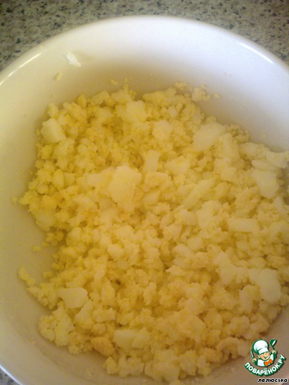 Гречневую крупу перебрать и залить водой. Поставить на плиту и варить на сильном огне до кипения, затем посолить и уменьшить температуру до средней и варить 15 минут при закрытой крышке. По истечению времени уменьшить огонь до минимума и варить еще минут 5-7 до полного впитывания воды. В это время сварить яйца и размять их вилкой до мелкой крошки...