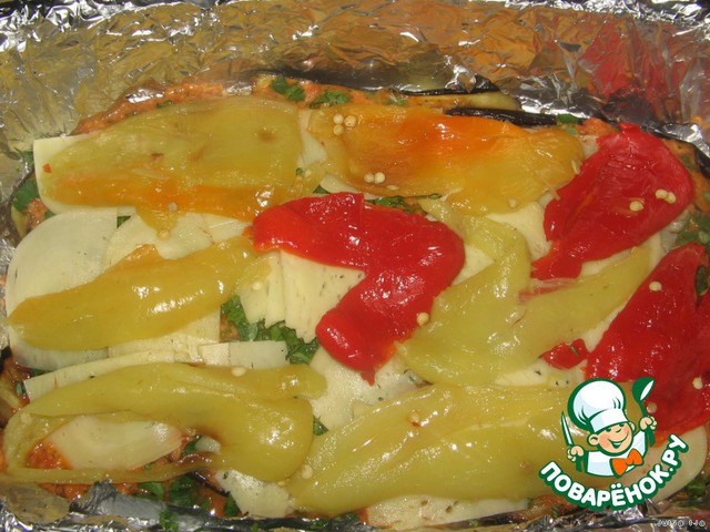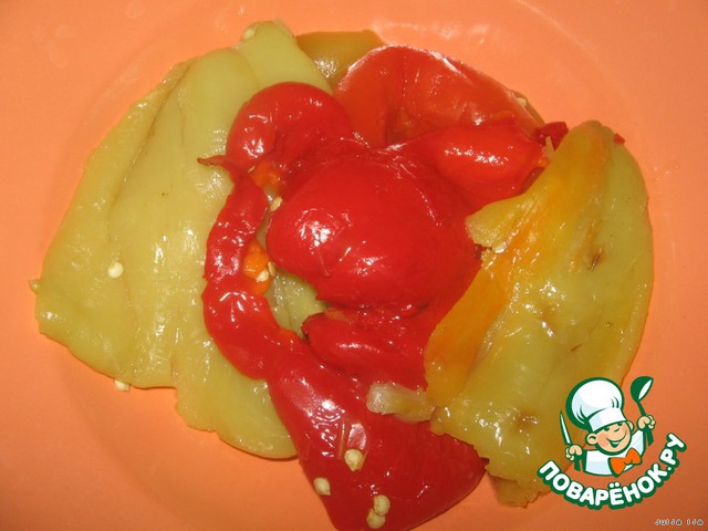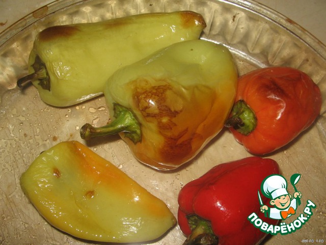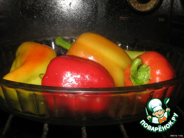 Перец смазываем растительным маслом без запаха (лучше всего оливковым), укладываем в форму или на противень.