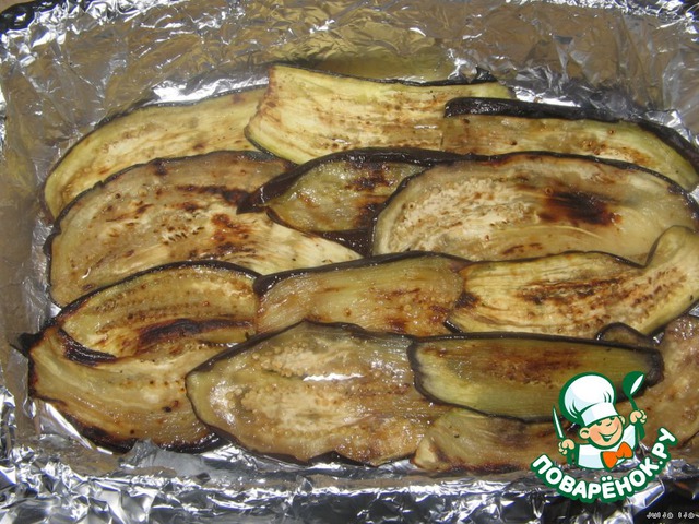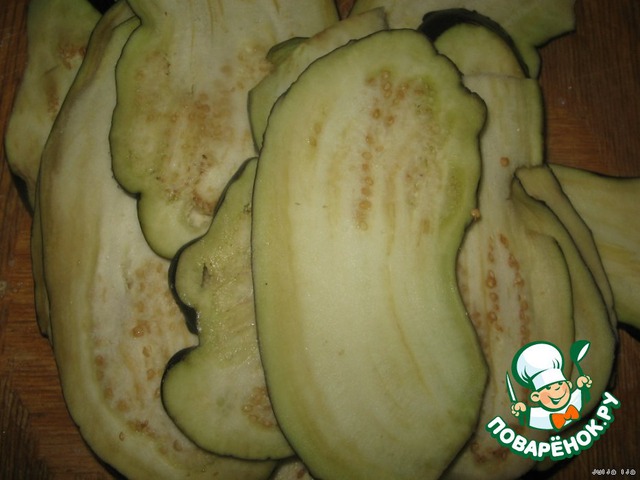 Баклажаны нарезаем тонкими пластинками (вдоль).