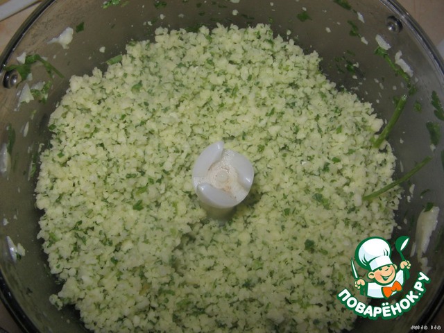 В блендере измельчаем 1/3 брынзы, немного зелени и чеснок.