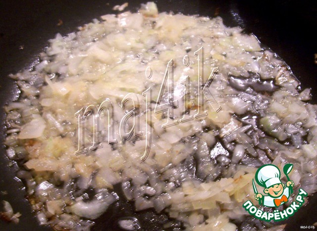 Лук мелко нарезать и обжарить на подсолнечном масле до прозрачного цвета.