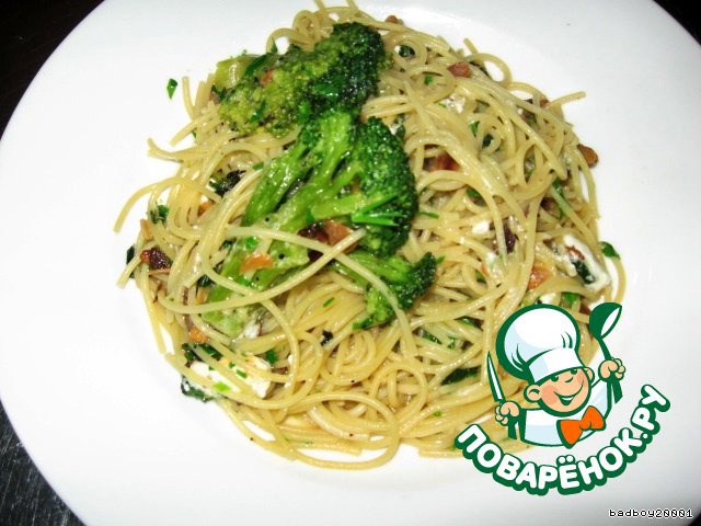 спагетти, и броколли отварить в подсоленой воде 4-5 минут